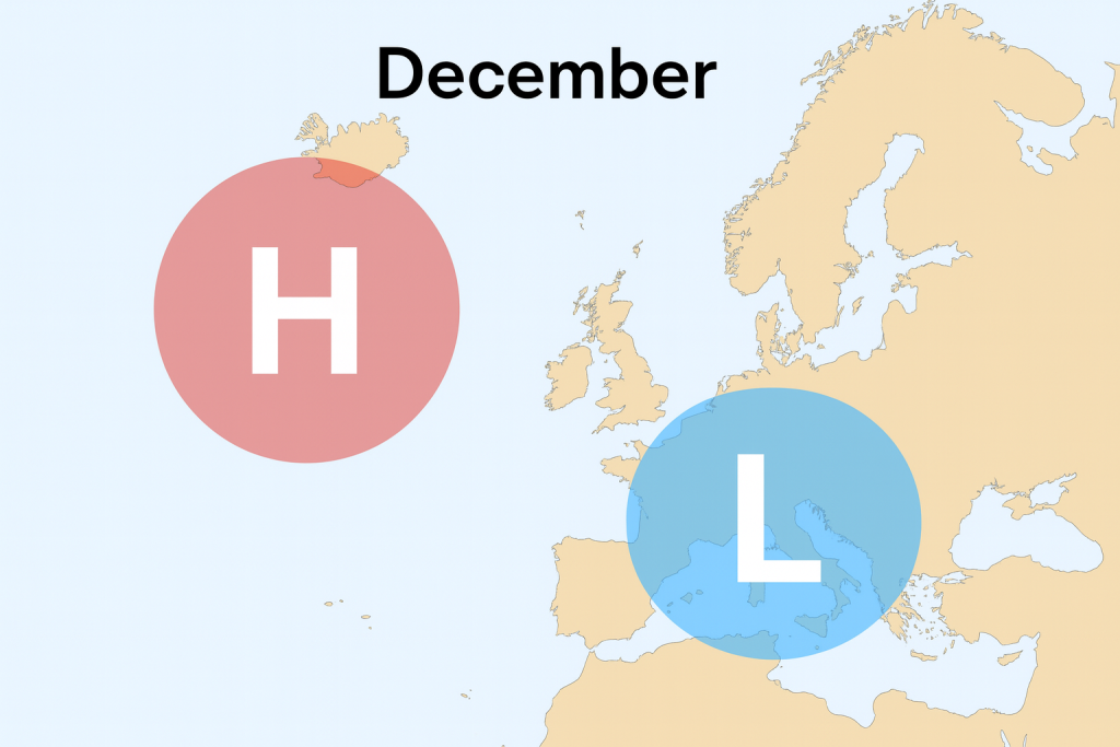 1. The usual westerly, Atlantic weather is less likely than normal during December